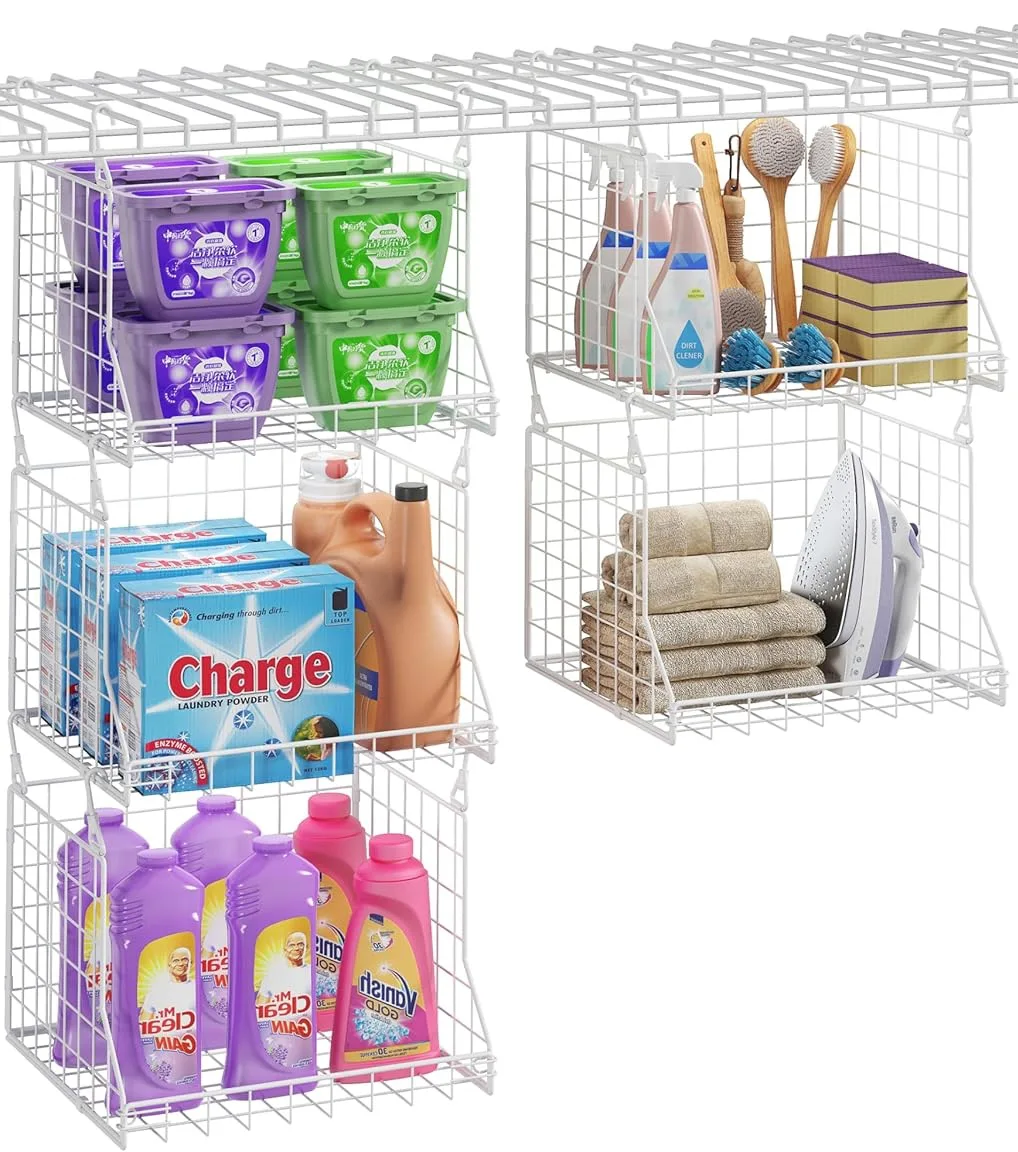 A brilliant storage add-on for wire-metal shelves
