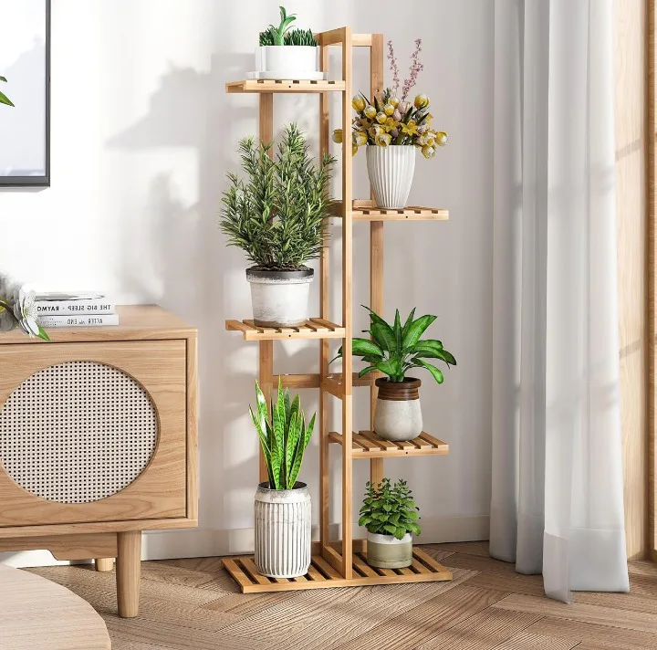 A stylish plant stand made from moisture-resistant bamboo