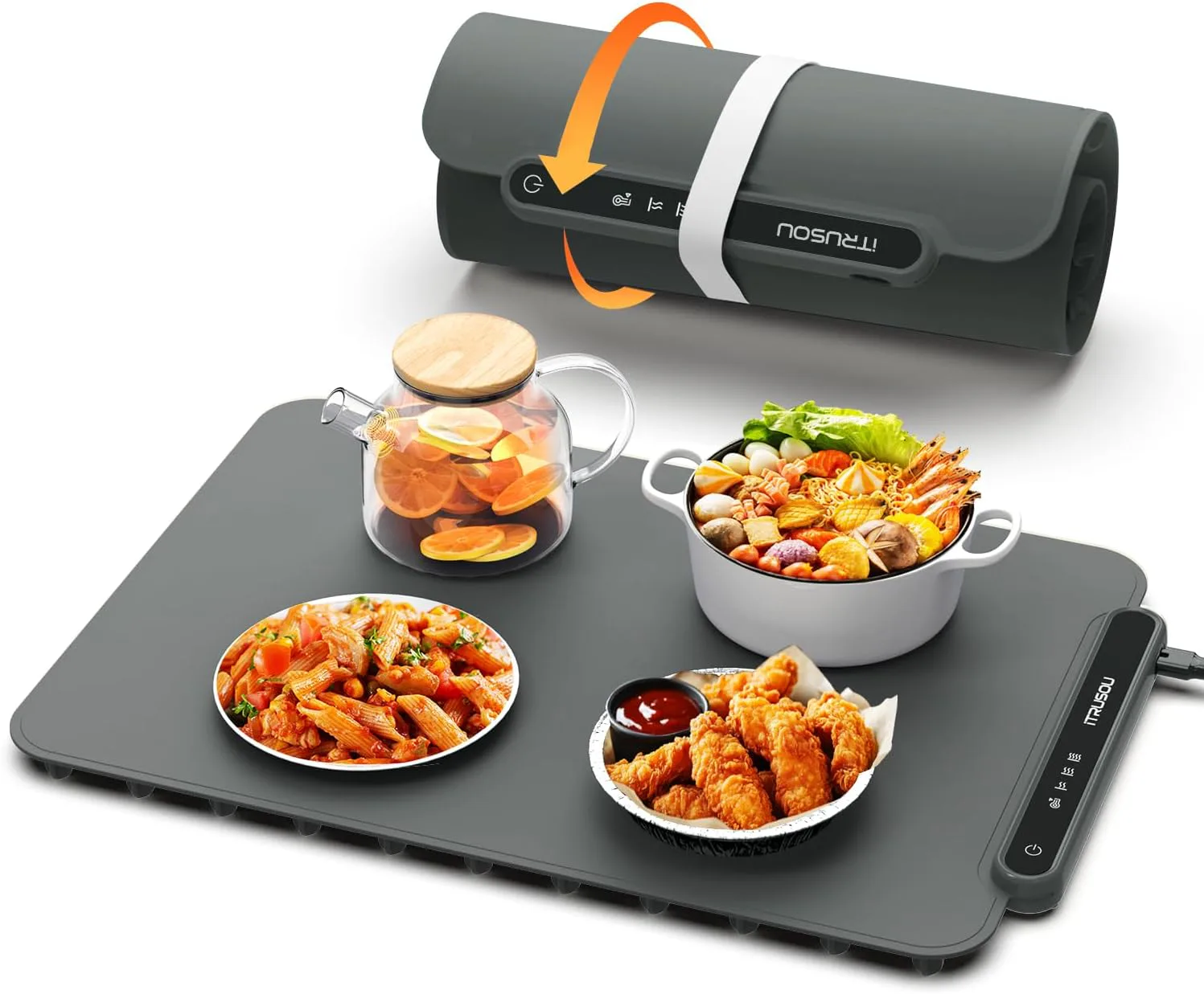 A food-warming mat that rolls up to save space