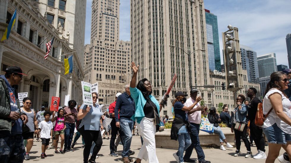 A resounding chant broke out in Millennium Park’s Wrigley Square following New Landmark Missionary Baptist Church Pastor Cy Fields’ prayer: “Chicago belongs to God.”