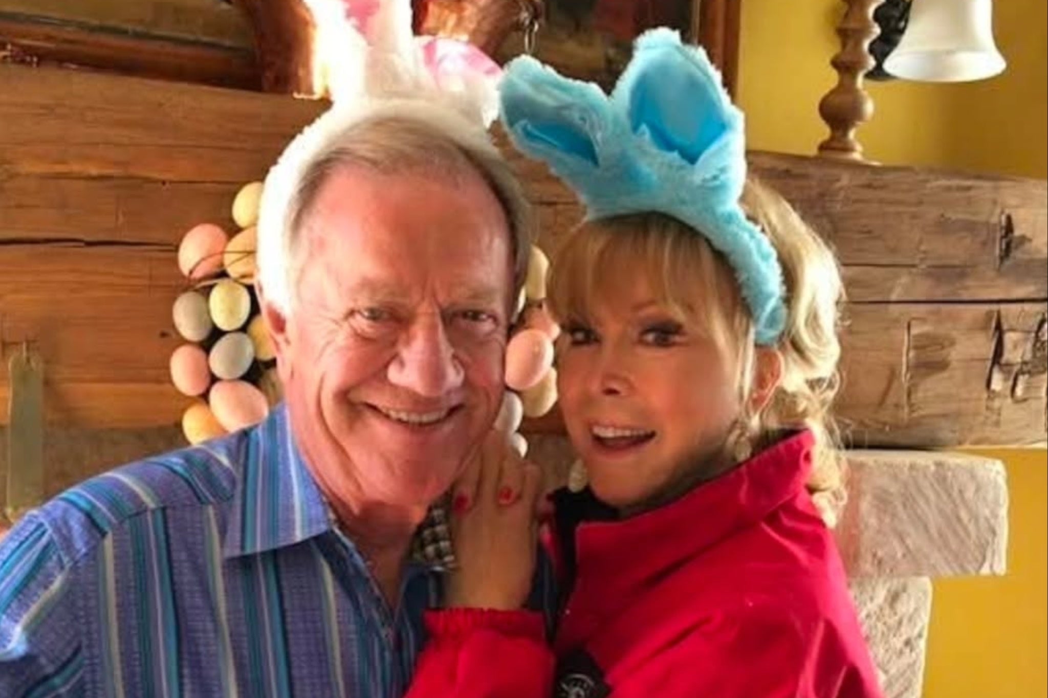 The I Dream of Jeannie star documented her Easter celebration Sunday on Instagram, alongside her partner, Jon Eicholtz. In the photo, she and Eicholtz each donned a pair of colorful bunny ears while smiling in their living room, with a bright easter egg wreath behind them.