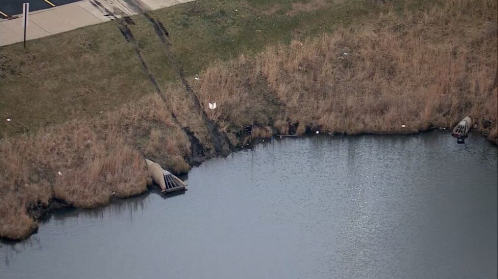 Naperville police responded shortly before 1 p.m. to a pond near the 95th Street Library after witnesses saw the partially submerged car in the pond.