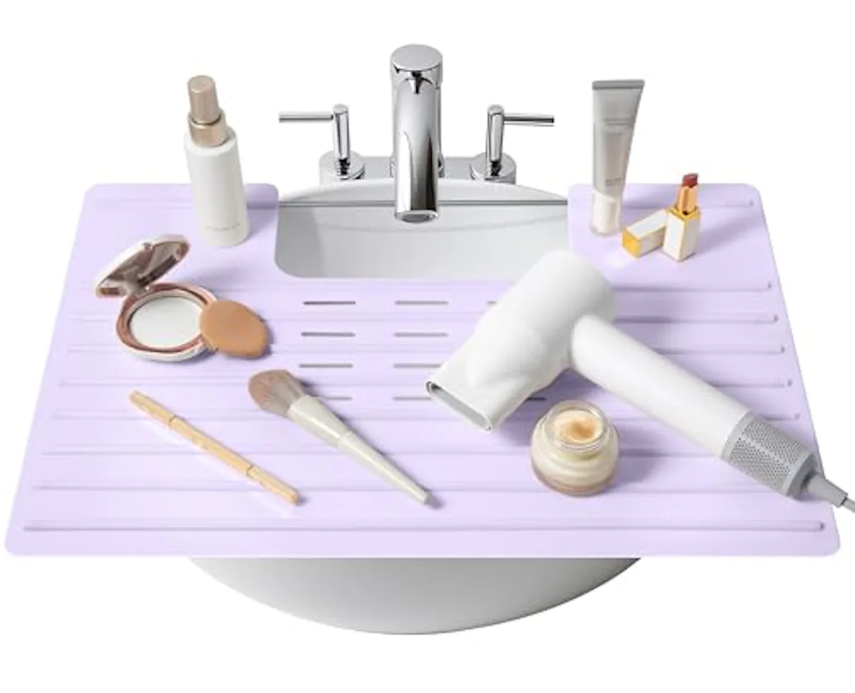 Amazon -If your bathroom counter always feels cramped — or you don’t have a counter at all — this foldable sink cover is such a smart fix. It sits right over your sink to create extra space for makeup, hair tools, or getting ready in general. The heat-resistant surface lets you safely use hot tools, and it’s easy to rinse clean after. Even better, it folds up for travel — perfect for hotel stays when you need a little extra room.