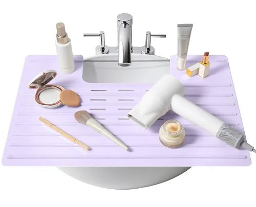Maplefield Silicone Bathroom Sink Cover for Extra Counter Space, Heat-Resistant Sink Topper and Makeup Mat, Foldable Bathroom Space Saver, Travel-Friendly Vanity Mat, Lavender, 22 x 2 x 2 Inches