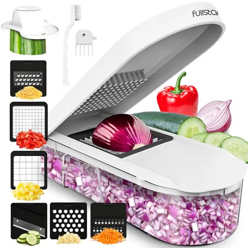 Fullstar Vegetable Chopper, Cheese Slicer, Food Chopper, Veggie Chopper, Onion Chopper, Vegetable Chopper with Container, Mandoline Slicer & Cheese Grater (6 in 1 - Full White)
