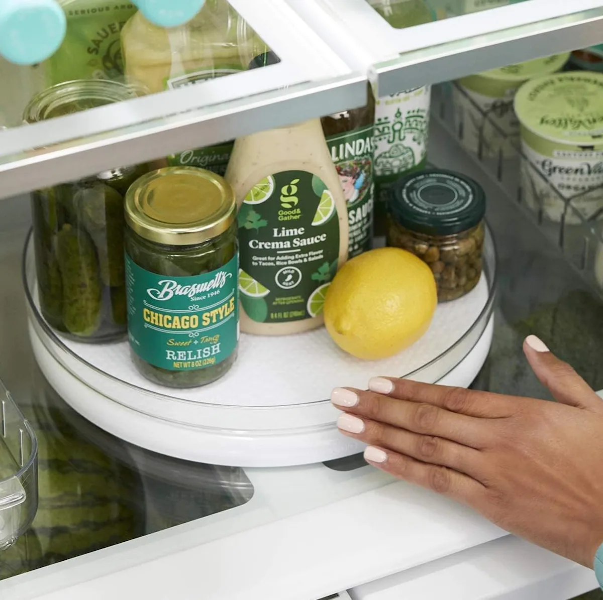 Items have a way of getting lost in the back of the fridge and going bad because you don’t even know they’re there. This turntable, though, keeps everything within view (and within reach) — just give it a quick spin. It rotates smoothly and the raised sides help ensure items don’t tip over and spill.