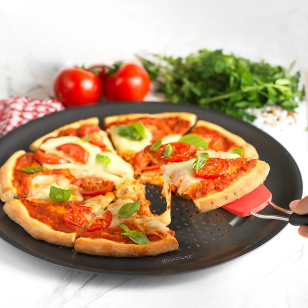 A vented pan that makes crispier homemade pizza