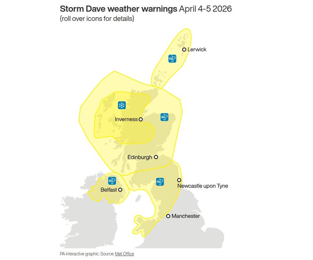 Storm Dave due to hit northern UK with high winds over Easter weekend