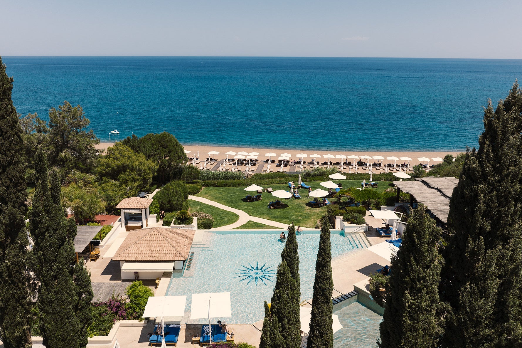 Contemporary in design and overlooking the sea, 187-room Almyra offers a welcoming atmosphere. The minimalist rooms come with marble bathrooms, and all have a balcony with a sea or garden view.