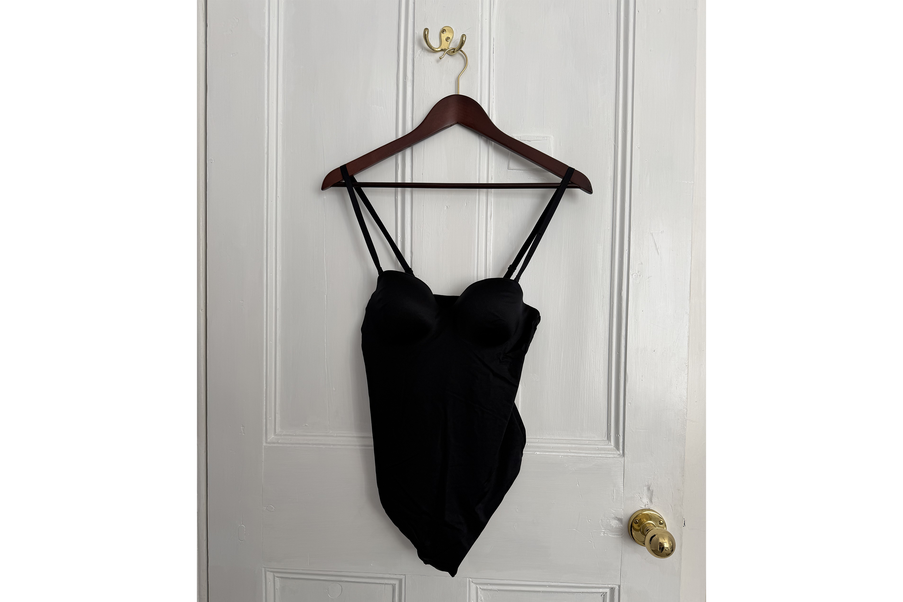 The Dorina shaping bodysuit takes the top spot, as I found it was the shapewear solution to suit pretty much any outfit. Easy to step into, it’s smoothing without being too restrictive – the one-piece wonder feels similar to a swimsuit to wear. Alternatively, if you’re working with a particularly tricky outfit or have a bigger budget, look no further than the Spanx plunge low-back thigh bodysuit. It’ll keep you feeling snatched while still going unseen thanks to the clever multiway design.