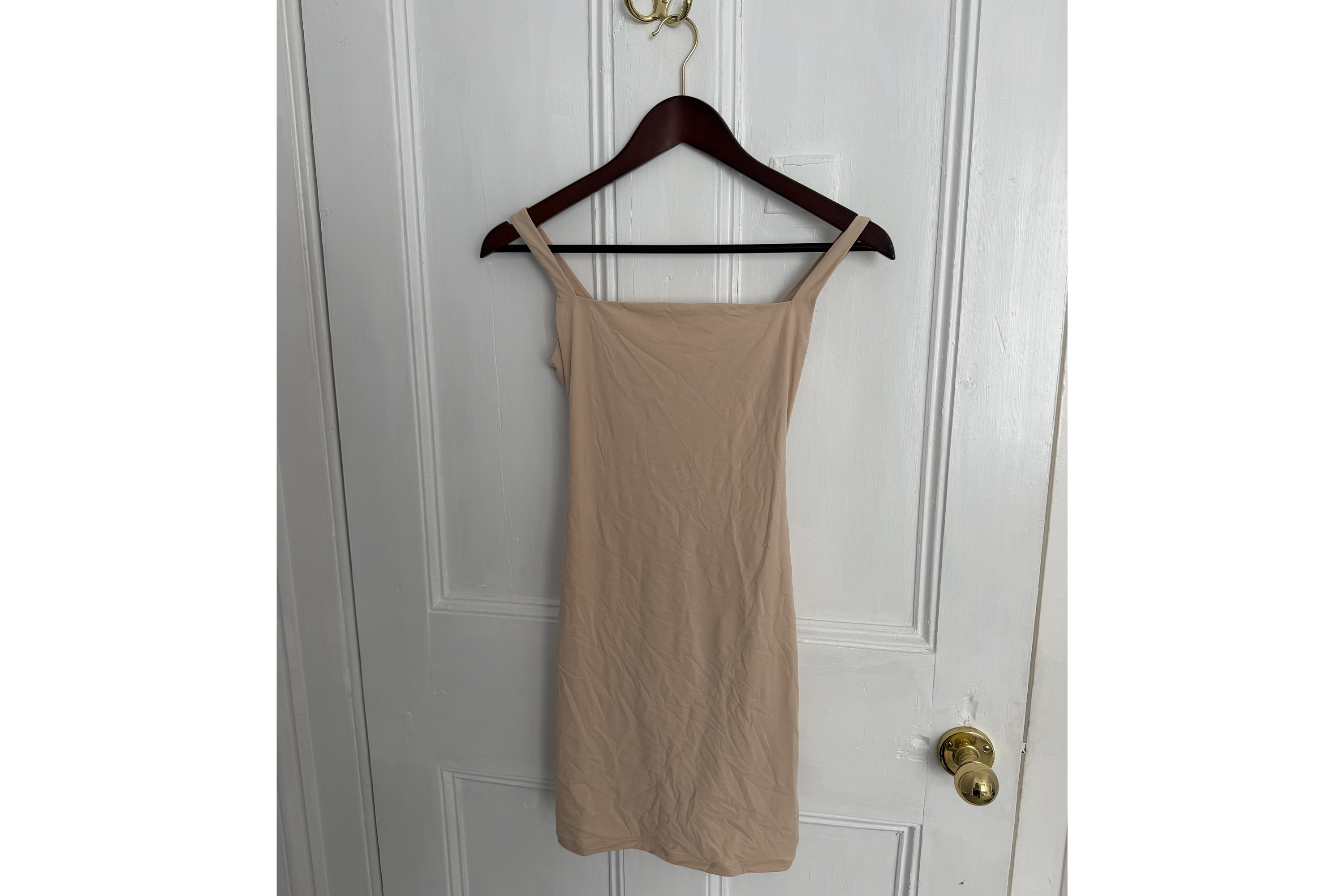 The square-neck slip dress with thicker straps means you can’t see your bra straps underneath (something I always find important with tops and dresses in general). The mini length also makes it perfect to wear under another mini dress, but also a midi or a maxi. I wore it to work underneath a fitted shirt dress and I liked how it just smoothed out my silhouette without trying to boost or make any part look smaller than it is. It made me feel slightly more confident just by having it on, but I wouldn’t say it’s one to opt for if you’re wanting to have high compression or a noticeably different silhouette.