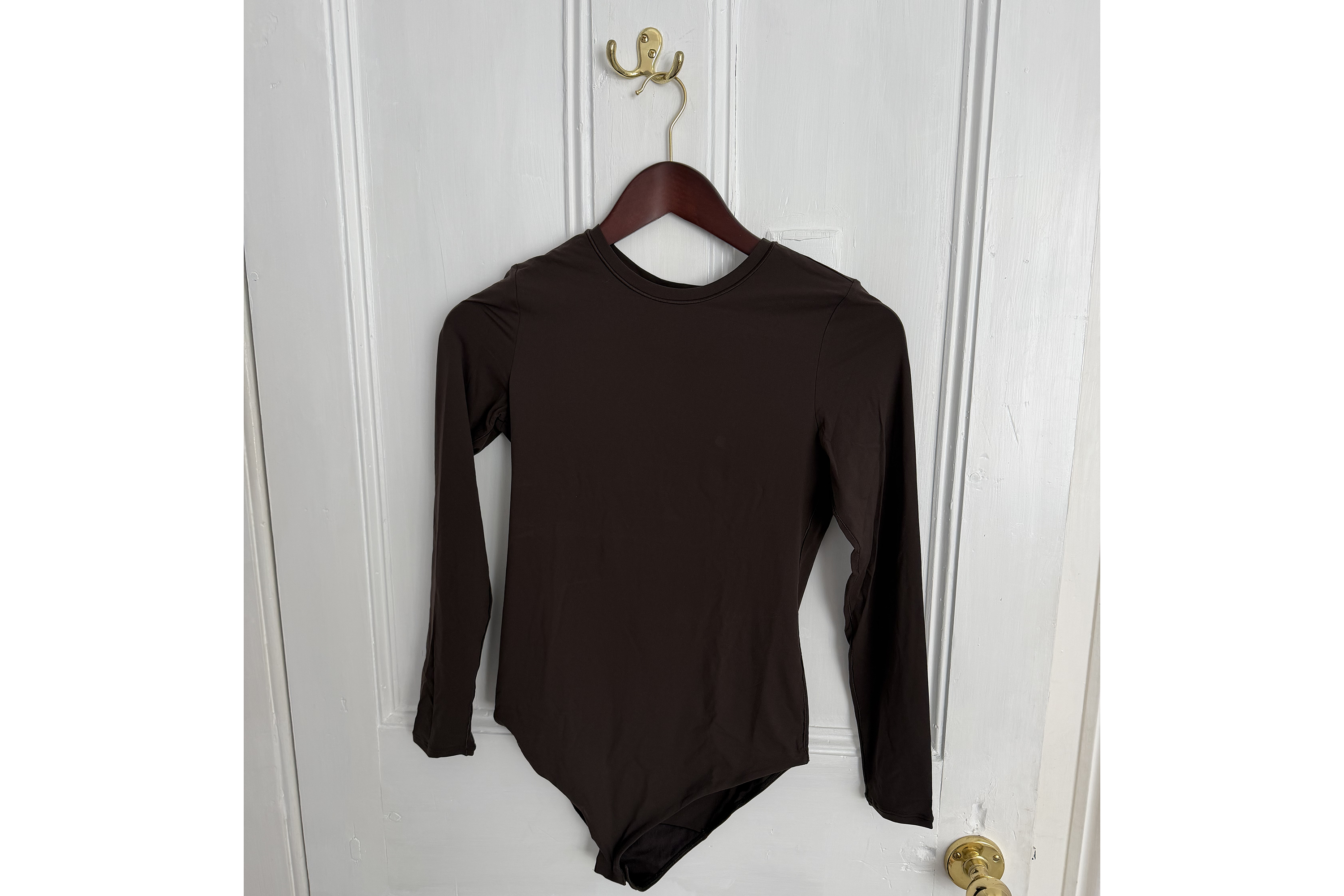 With snaps at the crotch, it’s easiest to undo them and pull the bodysuit on over your head. It offers light compression, providing a gentle smoothing effect on the arms, upper body, and slightly on the bum. If you want to feel cinched then this isn’t the one to go for but it’s the ideal option if you’re looking for a smoothing style top to wear without VPL under skirts and wide-leg trousers. It’s basically a more affordable option of the Skims styles.