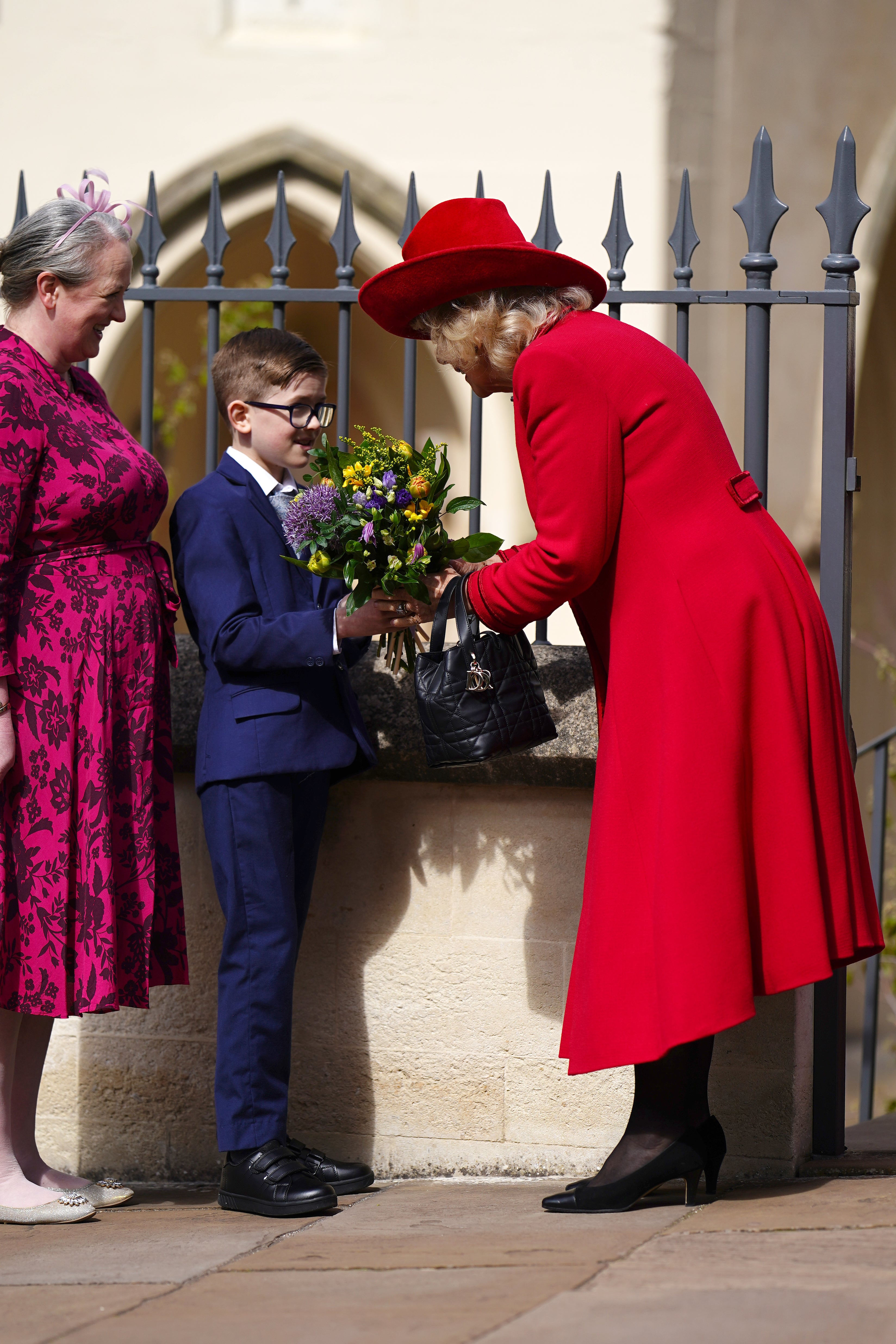 Camilla receiving flowers after the Easter Service at St George’s Chapel (Aaron Chown/PA) (PA Wire)